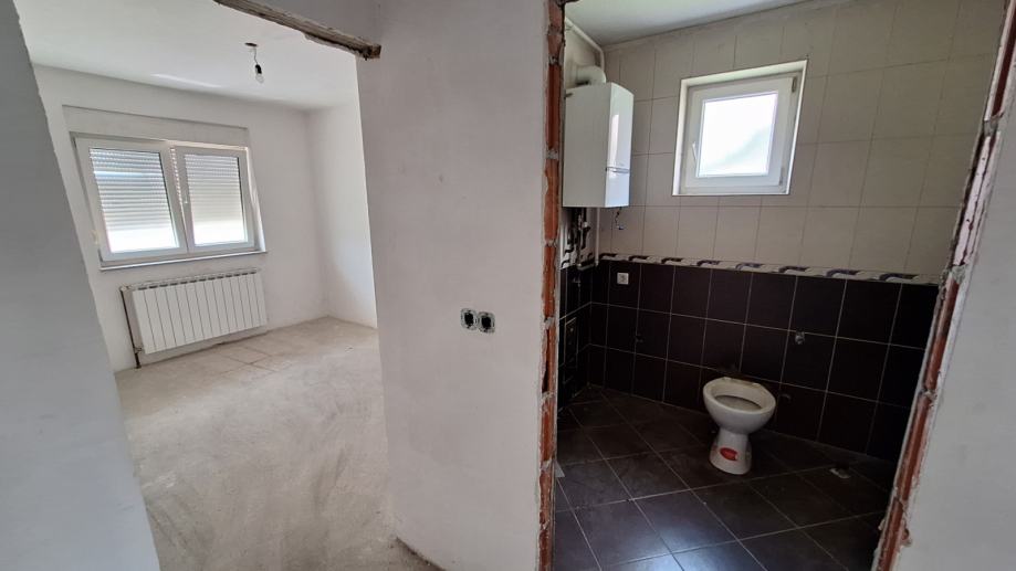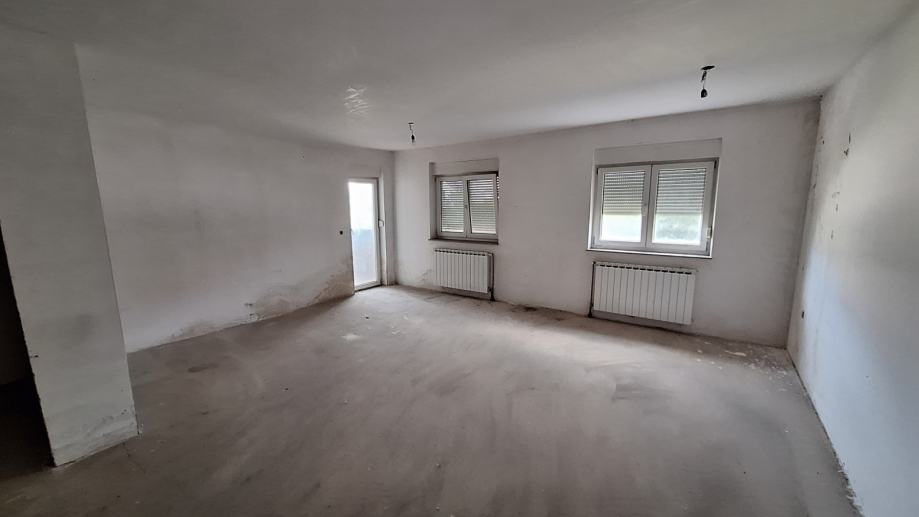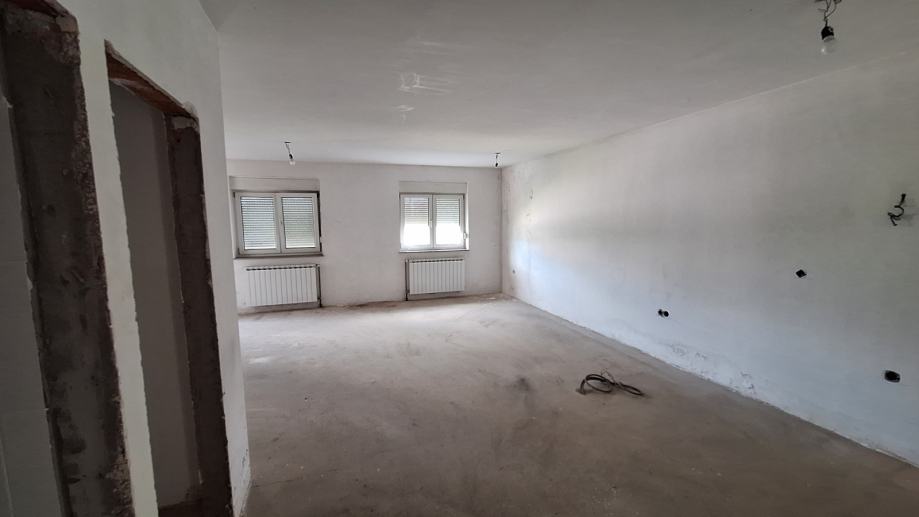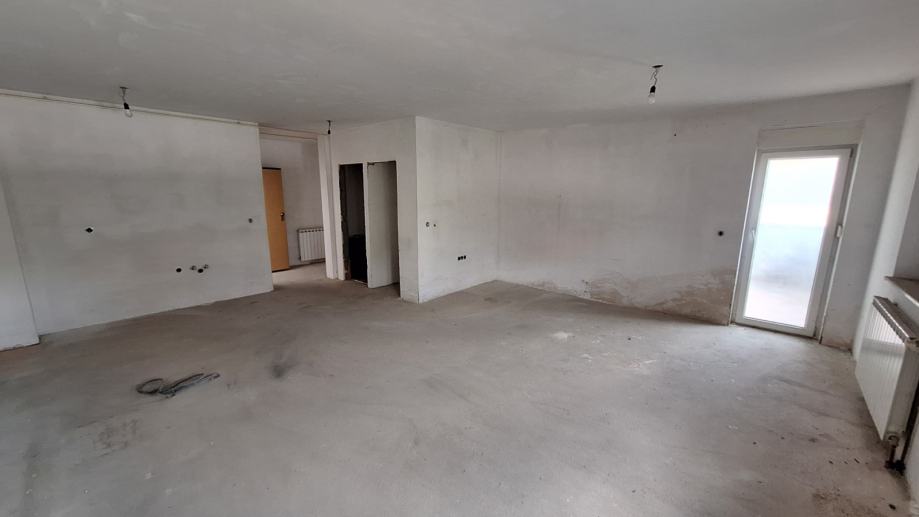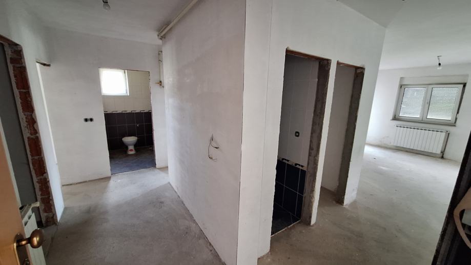 Stan se sastoji od prostranog dnevnog boravka s kuhinjom, tri spavaće sobe, kupaonice, dodatnog odvojenog toalate, ostave i lođe. Nije dovršen i prodaje se u roh bau stanju. U stan su povučene sve instalacije, ima priključak struje i radijatorsku mrežu. Nedostaje priključak vode i plina, što će trebati osigurati.