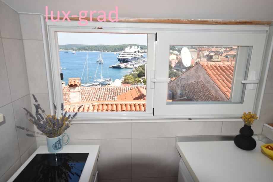 This charming apartment with a large terrace and mentioned magical view is situated in the heart of the beautiful town Rovinj.