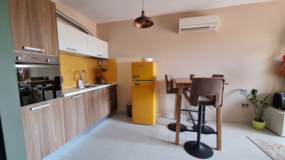 Prodaje se namjesten i potpuno opremljen (perilica za rublje, perilica za sudje, pecnica, ugradbeni frizider, Samsung TV...) Moguce su zamjene, iskljucivo za Rovinj!