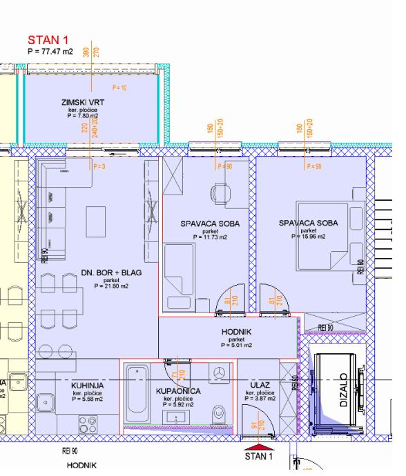 Stan S1: Karlovac, Grabrik 4, 77.47 m2, novogradnja (prodaja)