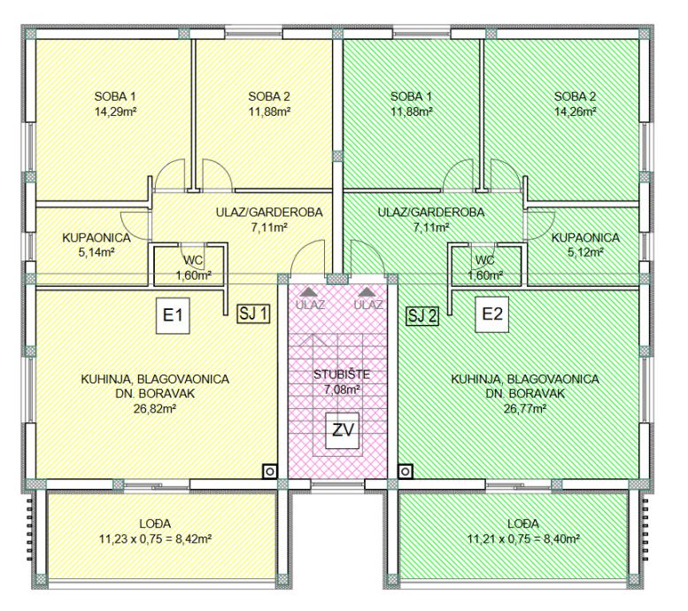 Ukupna stambena korisna vrijenost površina je 75,26 m2.