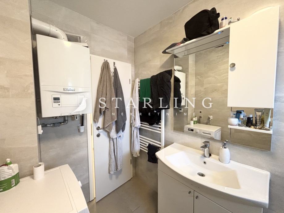 Korisna površina samog stana je 56 m2, dok ukupna površina obračunata po koeficijentima iznosi 59 m2.