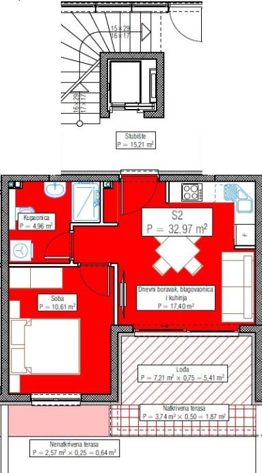 - Natkrivena terasa i loggia ukupne površine 13,52 m2