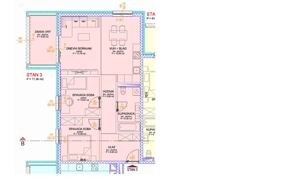 Stan S3: Karlovac, Grabrik 4, 77.36 m2, novogradnja (prodaja)
