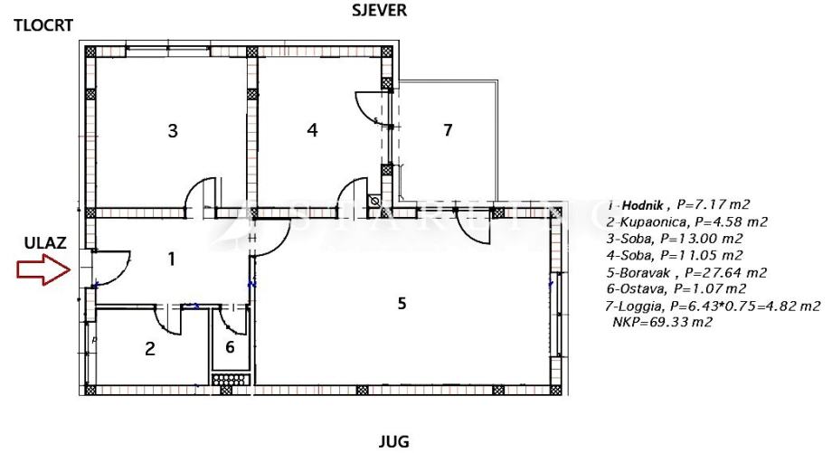 Prodaje se trosoban stan površine 69 m2 na prvom katu zgrade bez lifta.