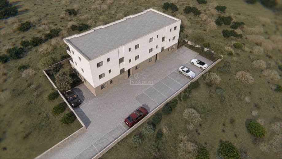 Na prodaju moderna stambena zgrada u izgradnji s ukupno 12 stanova, smještena na mirnoj lokaciji u Vodicama, 1100 m od plaže i 1600 m od centra grada.