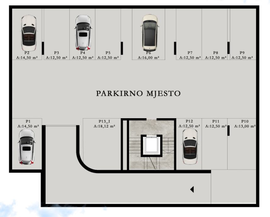 Uz svaki stan je uključena cijena garažnog parkirnog mjesta površine 12,5 - 18 m2 na etaži -1.