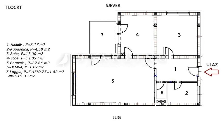 Prodaje se trosoban stan površine 69 m2 na prvom katu zgrade bez lifta.