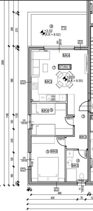 U mirnom dijelu Slatina, svega 150 metara od mora, smješten je dvosoban stan S5 na prvom katu moderne stambene zgrade u izgradnji. Stan ima unutarnju površinu od 53 m² te je pažljivo i funkcionalno raspoređen.