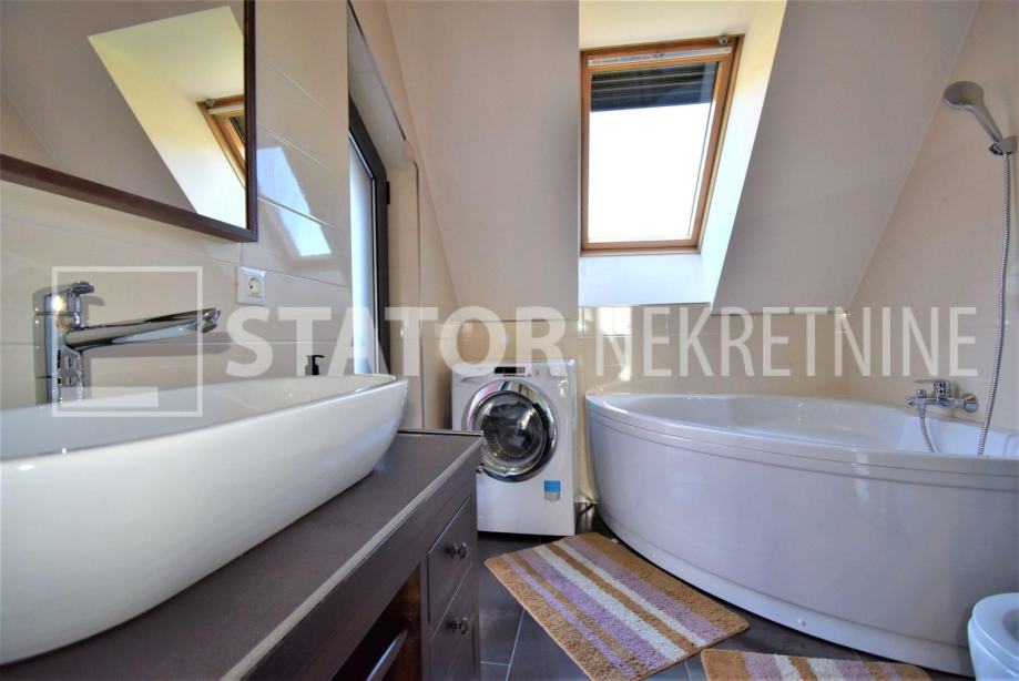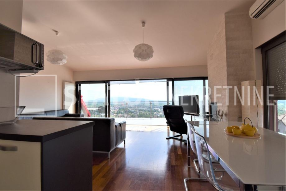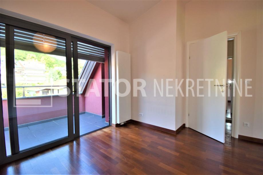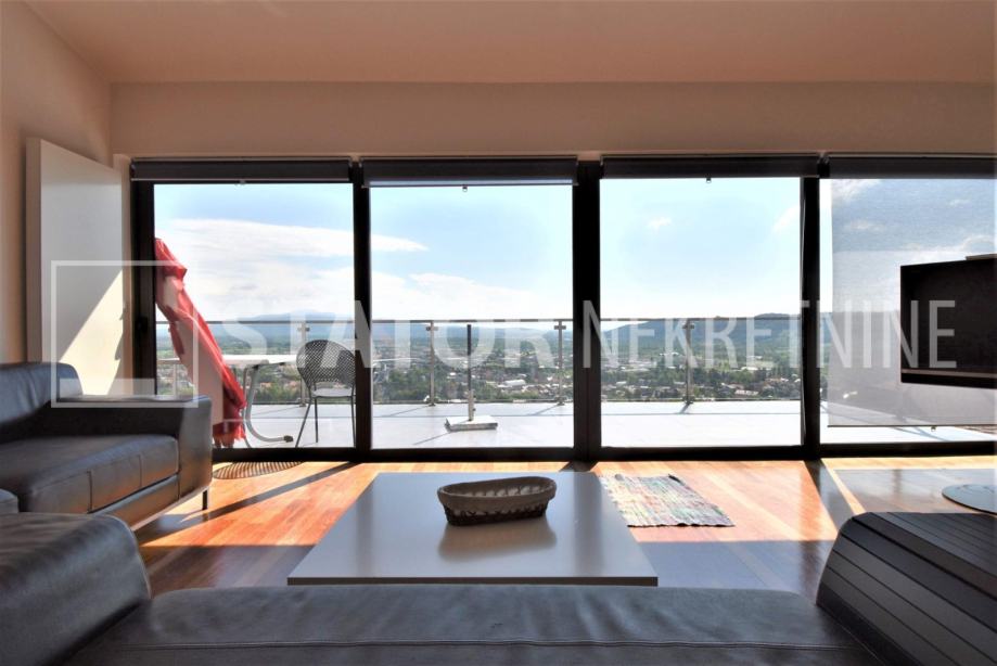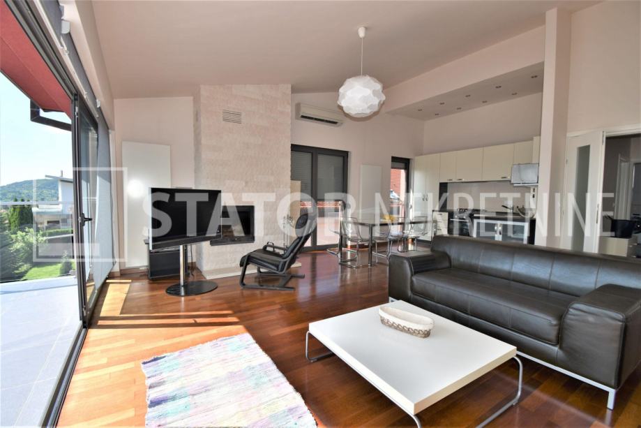 SAMOBOR, prodaje se trosobni stan sa pripadajućom garažom, parkirnim mjestom, ostavom i dijelom vrta. Sastoji se od ulaznog hodnika, ravno od ulaza predivnog dnevnog boravka iz kojeg se izlazi na terasu sa koje se pruža jedinstven pogled na grad. Iz dnevne sobe na lijevo je spavaća soba također sa izlaskom na terasu i također predivnog pogleda. u dnevnom boravku je i kamin. Ravo od ulaza je kuhinja. Desno od ulaza je druga spavaća soba sa izlaskom na loogu. Na kraju hodnika je kupaonica. Na - etaži je ostava, u dvorištu parkirno mjesto i u sklopu zgrade garaža. Stanu pripada i vrt u kojem je i vrtna kućica. grijanje je etažno, plinsko, klima. SVIJETAO PREDIVAN JEDINSTVEN STAN U SAMOBORU!!!