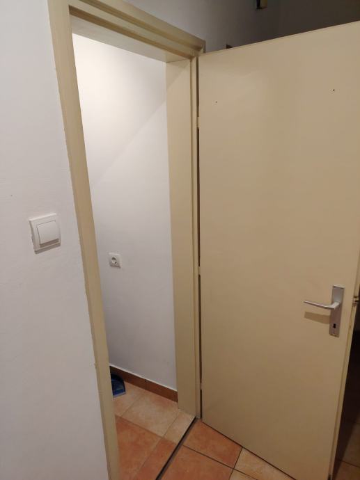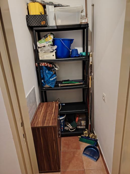 Stan se sastoji od ulaznog hodnika, ostave, kupaonice (WC, tuš kabina, ventilacija), kuhinje i sobe.