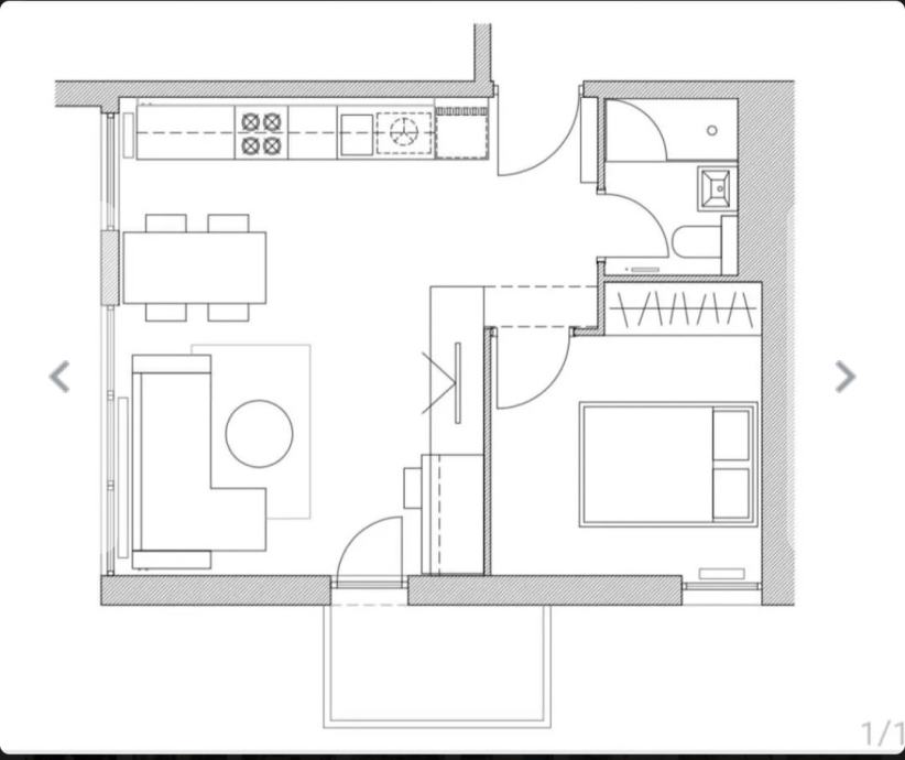 Sastoji se od ulaznog prostora, kuhinje, blagovaonice i dnevnog boravka (open space) te izdvojene spavaće sobe i kupaonice kao i balkona južne orijentacije kojem se pristupa iz dnevnog boravka. Stanu pripada i spremište u prizemlju. Stan je dvostrano orijentiran (jug i zapad) s puno prirodnog osvjetljenja, u mirnoj ulici u blizini svih važnijih sadržaja (vrtić, škola, trgovine, parkovi i dječja igrališta, autobusna stanica), a od glavnog gradskog trga je udaljen deset minuta hoda. Parkiranje je na javnom parkiralištu bez naplate.