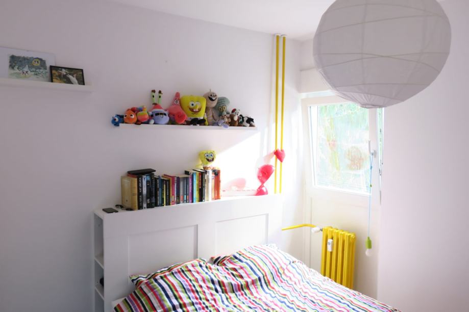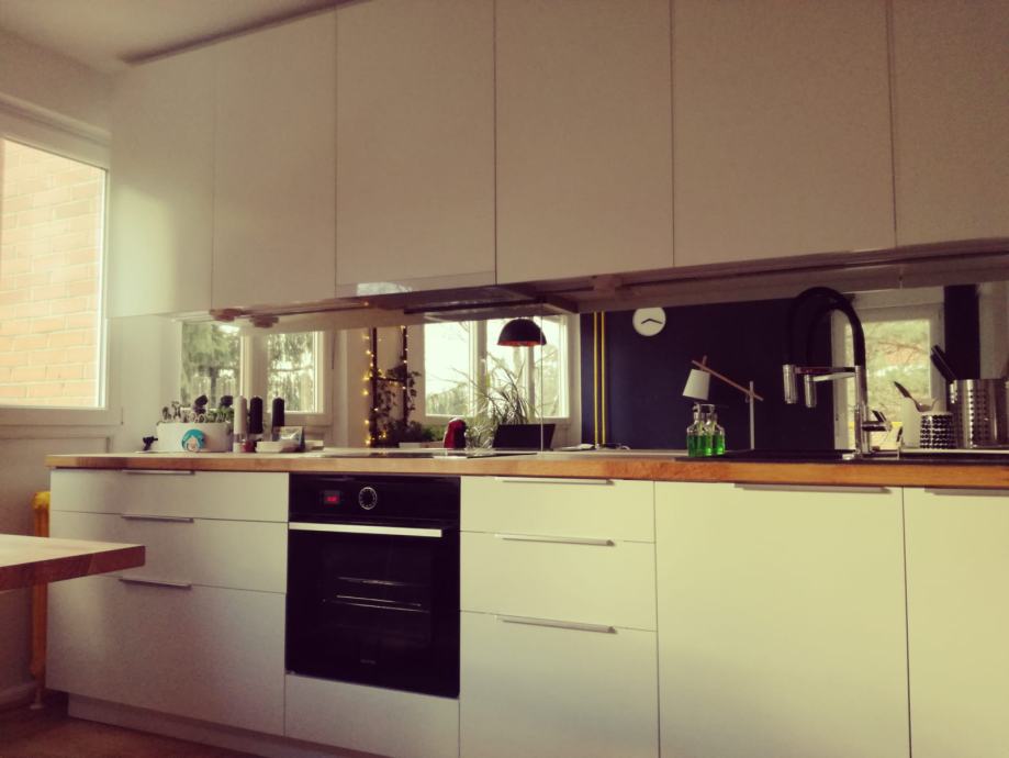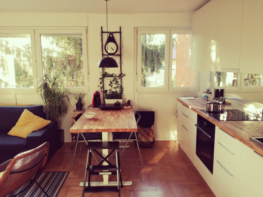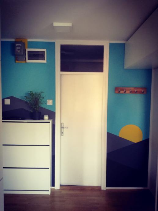 - stolarski elementi namještaja rađeni po mjeri: kuhinja (iveral, radna ploča puno hrastovo drvo) s ugrađenim ispravnim uređajima (indukcijski štednjak, izvlačna napa, pećnica, ugradbeni hladnjak), ugrađeni veliki ormar s kliznim vratima u spavaćoj sobi, ugrađeni ormar s inkorporiranim radnim stolom i policama u dnevnom boravku.