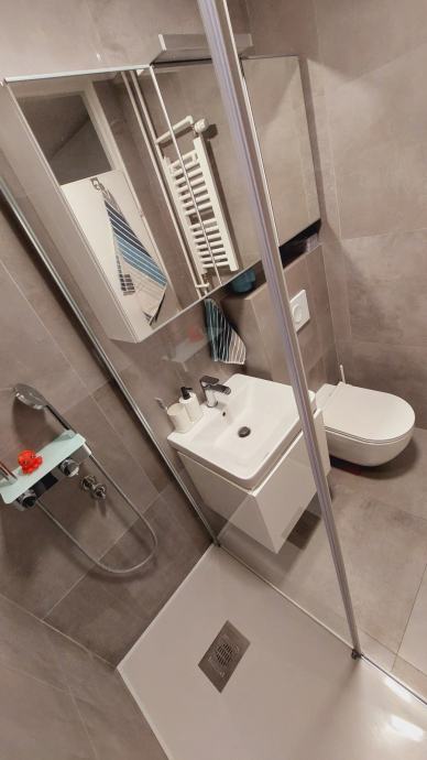 Stan se prodaje sa svim ugrađenim elementima namještaja i ugrađenim uređajima (kompletno uređena kupaonica, ugrađeni ormar u spavaćoj sobi, kompletna kuhinja, ugrađeni ormar u dnevnom boravku).