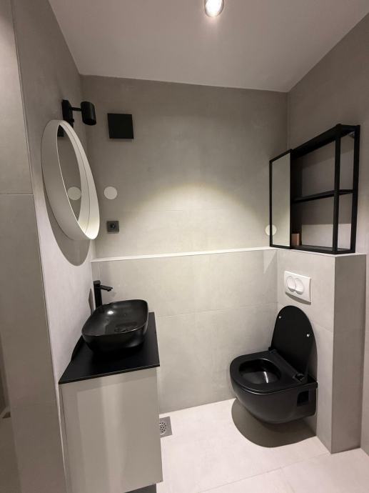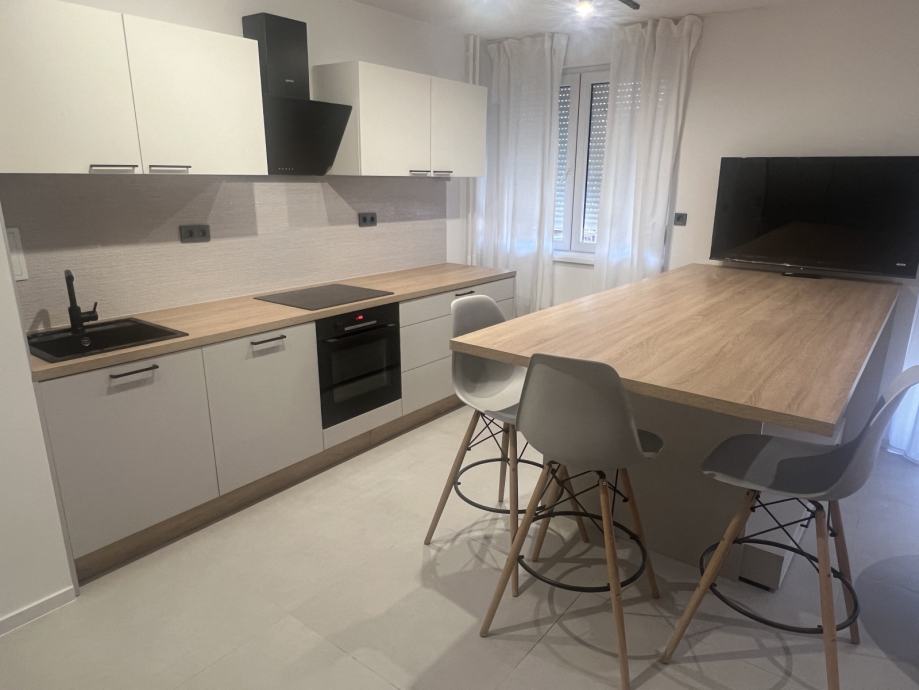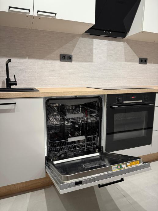 Studio je funkcionalno i moderno uređen, potpuno adaptiran, uz nov namještaj i opremu: protuprovalna vrata, indukcijska ploča, pećnica, perilica suđa, perilica rublja, ugradbeni hladnjak i zamrzivač.