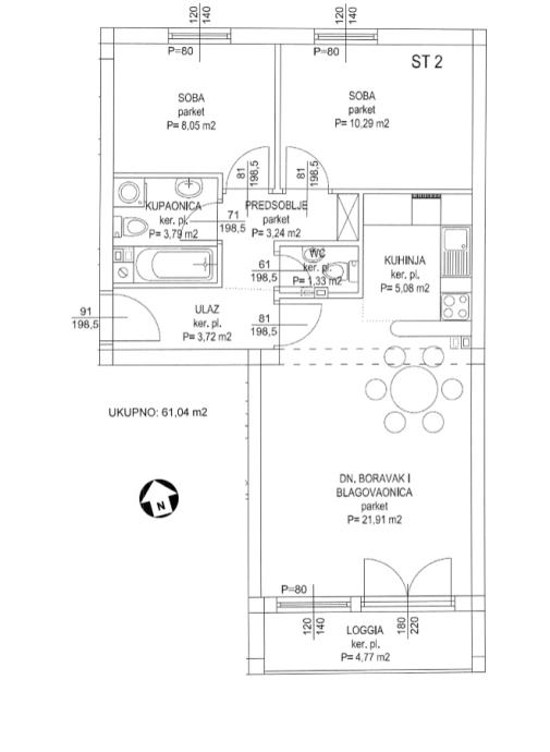 Cijena stana 14ab-2 iznosi 76.300,00€ (572.250.00kn) za 61,04m2.