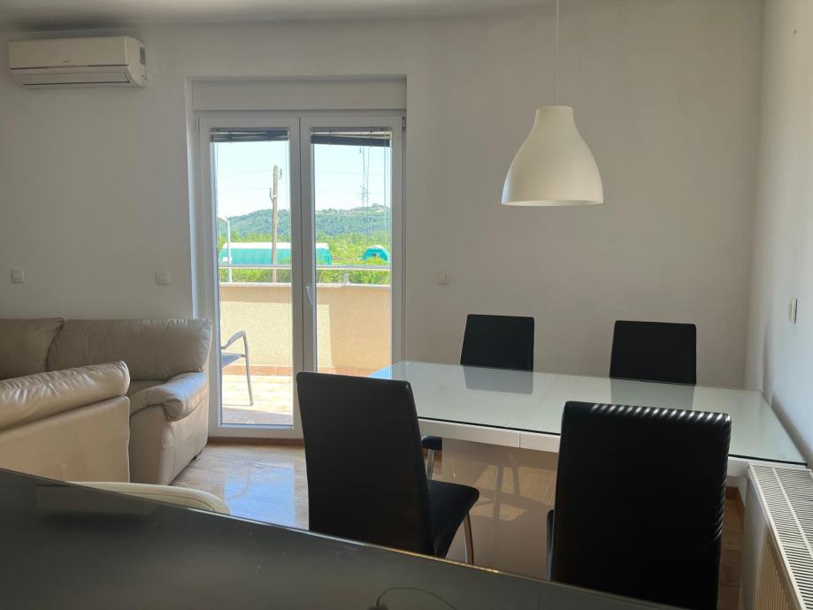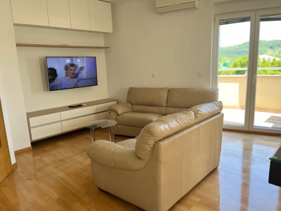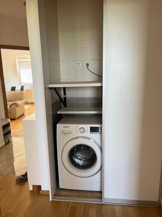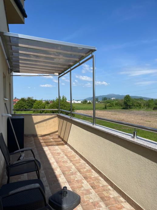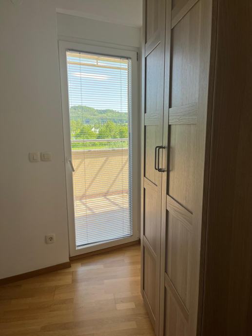 Iznajmljujem trosobni stan, 63 m2 stambene površine, na prvom katu urbane vile sa vanjskim parkirnim mjestom, garažom, spremištem. Stan se sastoji od dnevnog boravka sa kuhinjom, velike spavaće sobe sa walk-in ormarom, male sobe, predsoblja, kuponice, i velikog balkona. Dugoročan najam prednost. Kućni ljubimci zabranjeni. Info na broj:098/714-681