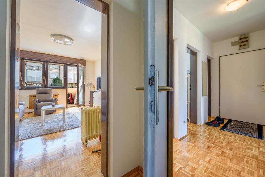 Stan se nalazi na prvom katu uredne zgrade, idealan za obitelj ili par koji traži mirno okruženje uz sve sadržaje nadohvat ruke.