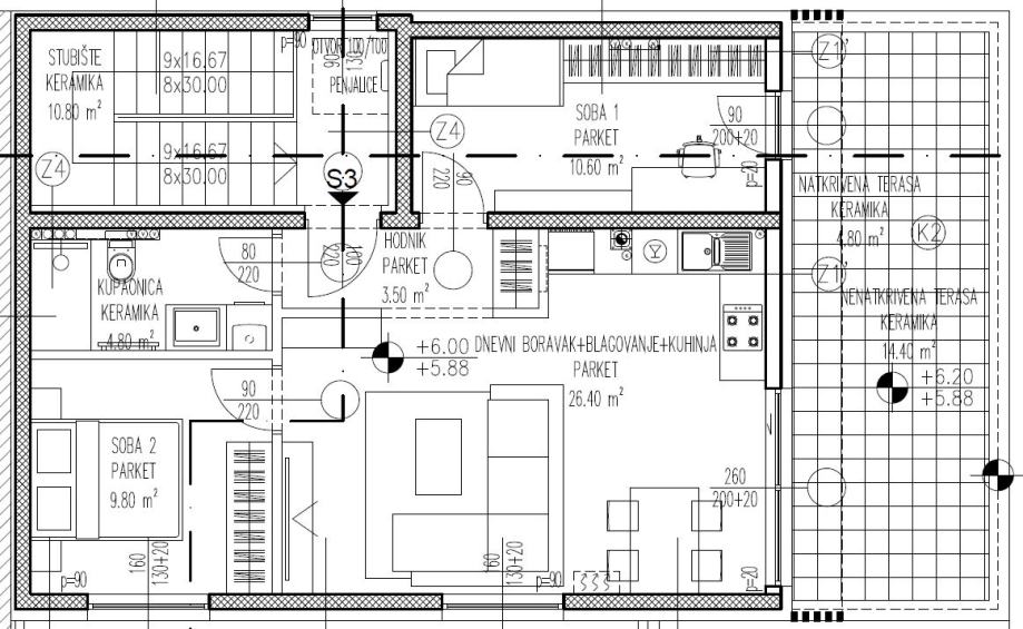 Luksuzna oprema i 1. Klasa završnih materijala – keramike i parketa.