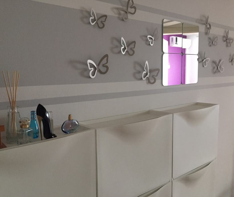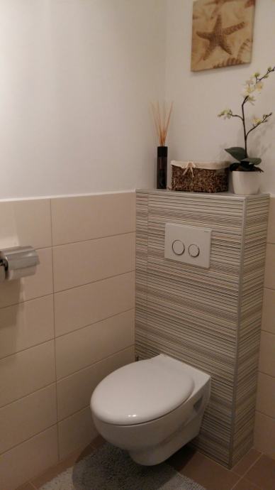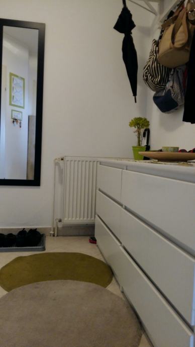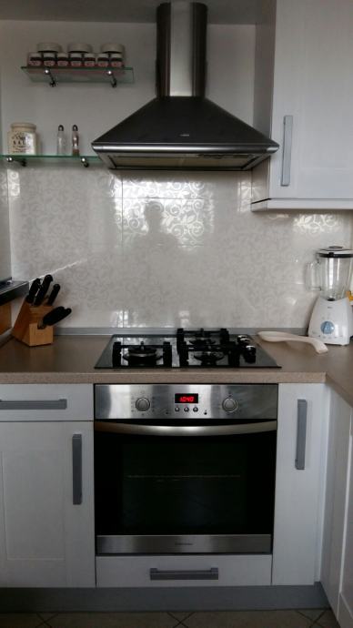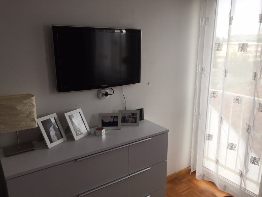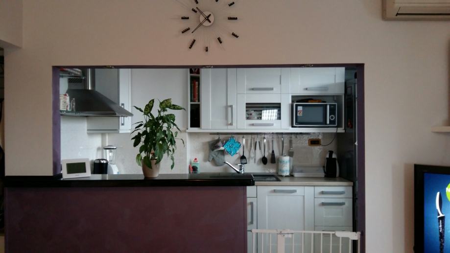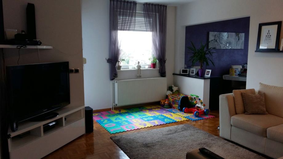 Stan se prodaje potpuno namješten - "ključ u ruke" (kompletno opremljena kuhinja, uključeni svi tehnički uređaji - hladnjak, pećnica, štednjak, mikrovalna, perilica za suđe, 2 televizora visoke kvalitete, kućno kino, perilica za rublje), videoportafon, kutna garnitura i veliki niski stolić (trenutno se ne koristi radi malog djeteta), stol za blagovanje i 6 stolica, bračni krevet i komoda u jednoj spavaćoj sobi, veliki ormar u drugoj spavaćoj sobi, vješalice za jakne i pripadajući komplet za hodnik sa ladicama, ladičari za cipele i ugradbeni ormarići u drugom hodniku, ugradbeni ormar u wc-u, komplet od stola i 4 stolice sa novim navlakama na balkonu. Sanitarije u wc-u i kupaoni su Catalano i Laufen a slavine Grohe.