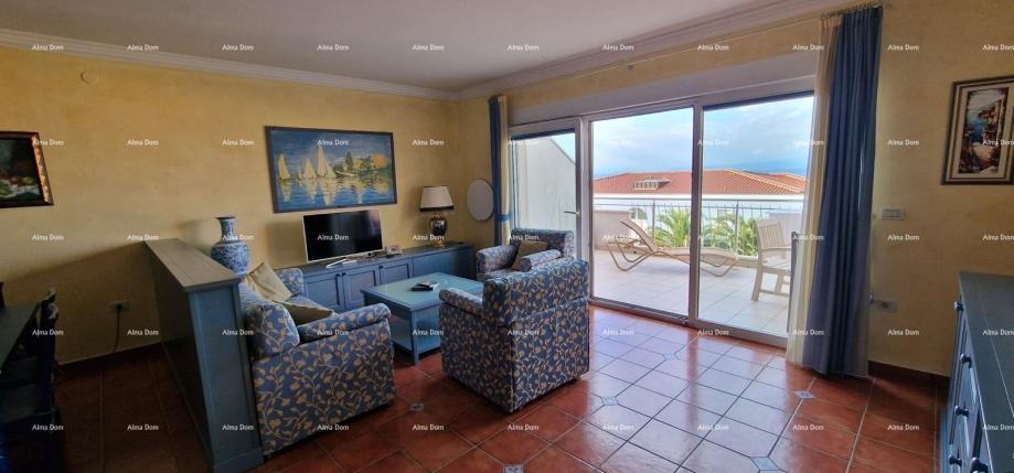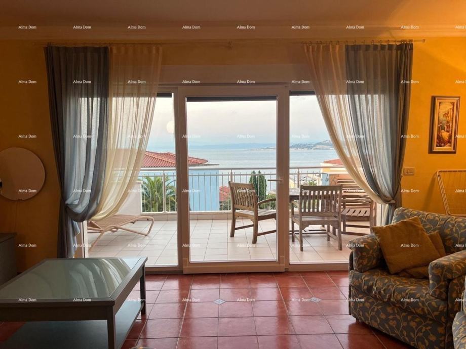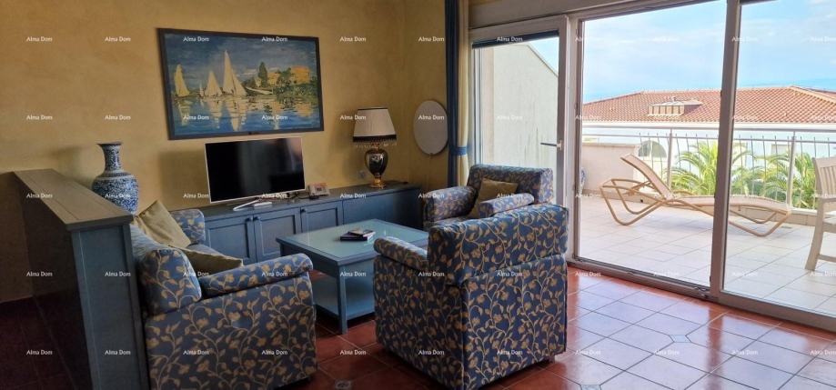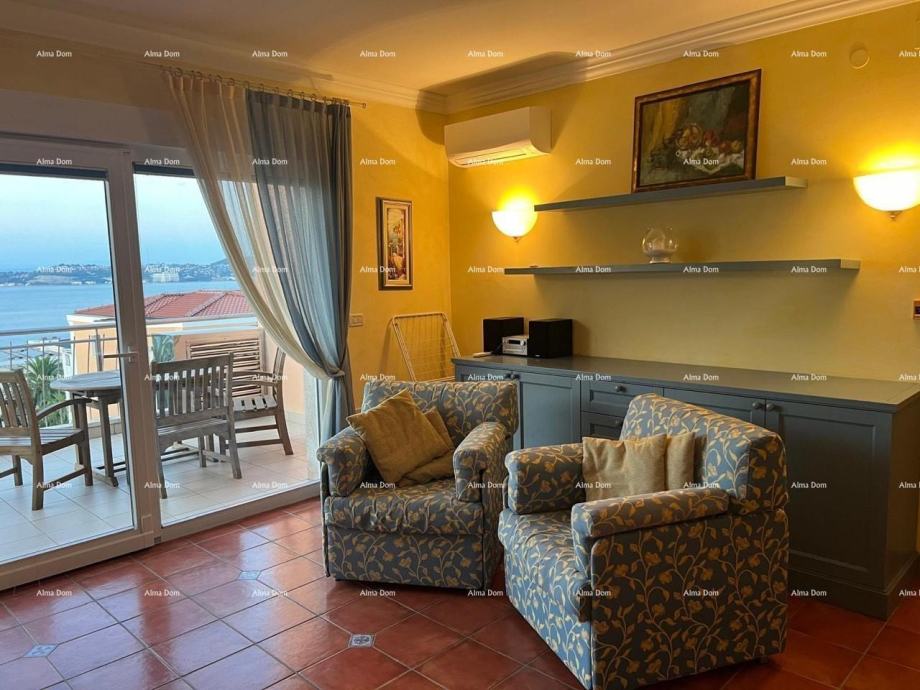 Apartman se nalazi 150 metara od plaže. 1.kat. Sastoji se od dnevnog boravka i kuhinje, spavaće sobe, garderobe, kupatila, dodatnog WC. Ukupna površina 81,61m2. Stanu pripada spremište i natkriveni parking u suterenu zgrade. Apartman se prodaje kompletno namješten.