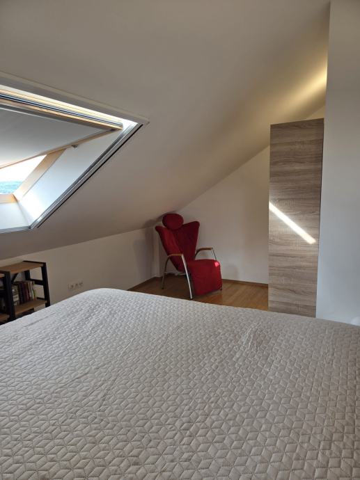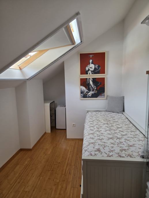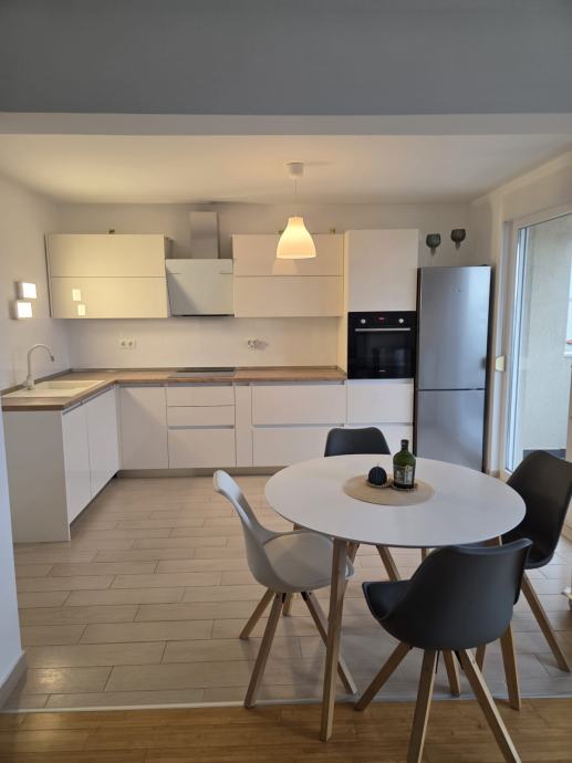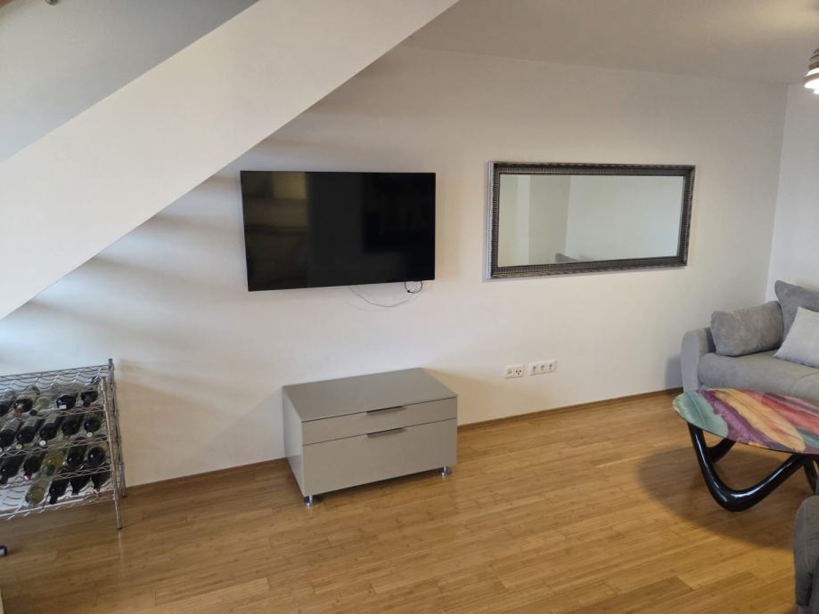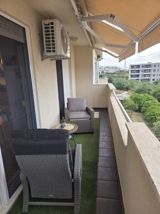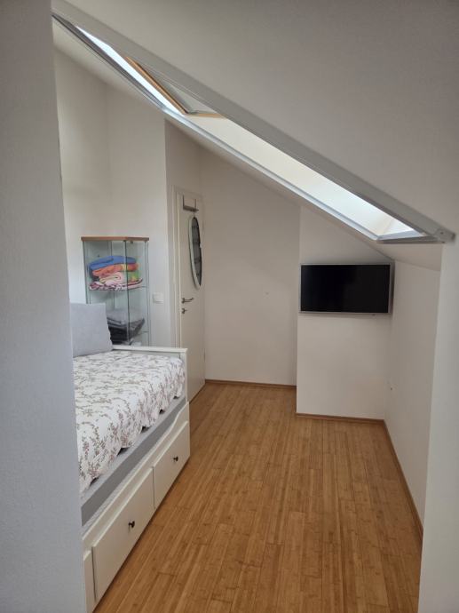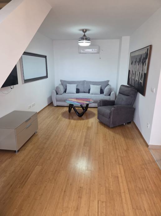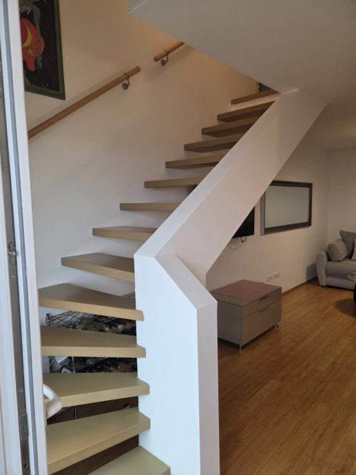 Prodaje se kompletno namješten dvoetažni stan u Segetu Donjem, svega 2 min.šetnje do plaže. Stan se sastoji od hodnika,kupaonice,velikog dnevnog boravka,kuhinje,blagavaonice na prvoj etaži te dvije spavaće sobe i kupaonica na drugoj etaži. Stan ima lođu pov.8,5m2 s koje se pruža lijep pogled na more. U dvorištu zgrade se nalazi jedno parkirno mjesto koje je etažirano uz stan, te još jedno garažno parkirno mjesto.