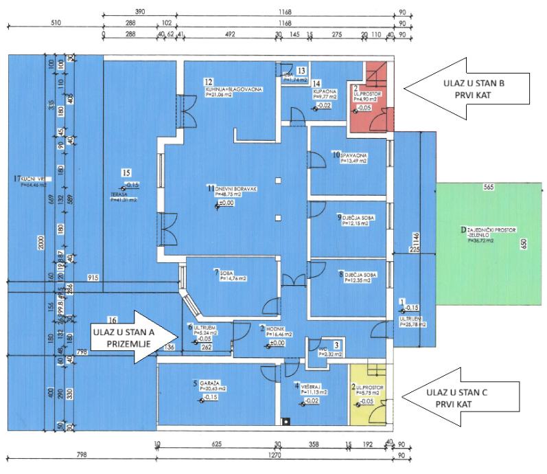 - stan se nalazi u prizemlju male stambene zgrade s 3 stambene jedinice ( etažno vlasništvo )