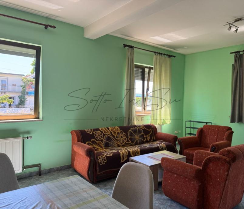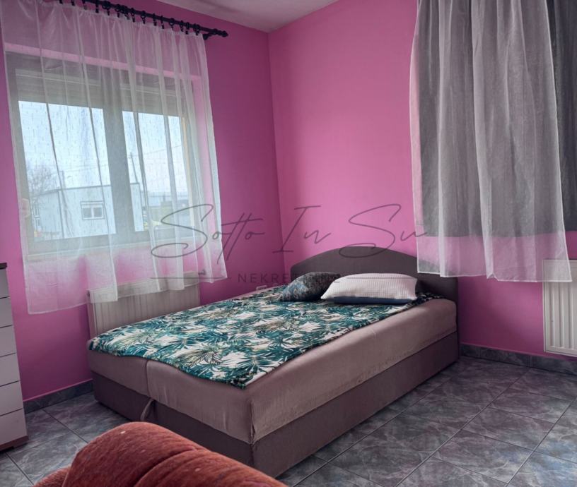 Iznajmljuje se stan u prizemlju obiteljske kuće u Jelkovcu površine 65m2 sa dva parkirna mjesta ispred kuće. Stan se sastoji od ulaznog prostora, spavaće sobe, kupaone sa toaletom, kuhinje i dnevnog boravka.sa terasom. Stan se iznajmljuje opremljen svim aparatima. U stanu mogu boraviti 4-5i osoba, a ovisno o potrebi budućeg najmoprimca može se dodati još jedan ležaj. Kuća se nalazi u mirnom i zelenom okruženju, a povezana je čestom autobusnom linijom do centra grada, stanica se nalazi na 3min. hoda od nekretnine.dok je izlazak na Slavonsku aveniju za minutu automobilom. U blizini stana nalaze se svi sadržaji potrebni za normalno funkcioniranje kao što su škole, vrtići, dom zdravlja, trgovine, crkva, shopping centri itd...Ugovor o najmu se sklapa na minimalno godinu dana i pri potpisu se plaća depozit u visini jedne mjesečne najamnine. Cijena najma ne uključuje režijske troškove i sva brojila su zasebna. Za sve ostale informacije ili razgledavanje budite ljubazni kontaktirati na telefon: 00385995362019 ( može WhatsApp i Viber) ili na mail: info@sottoinsu.hr