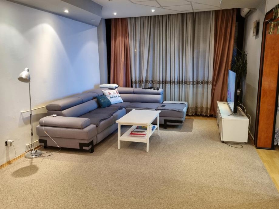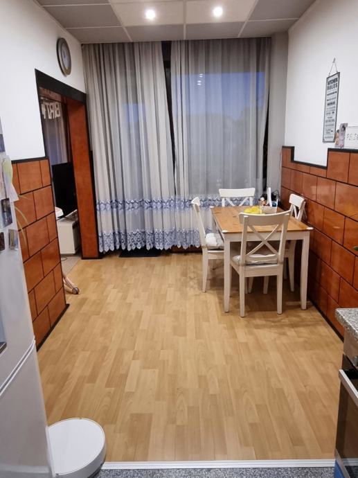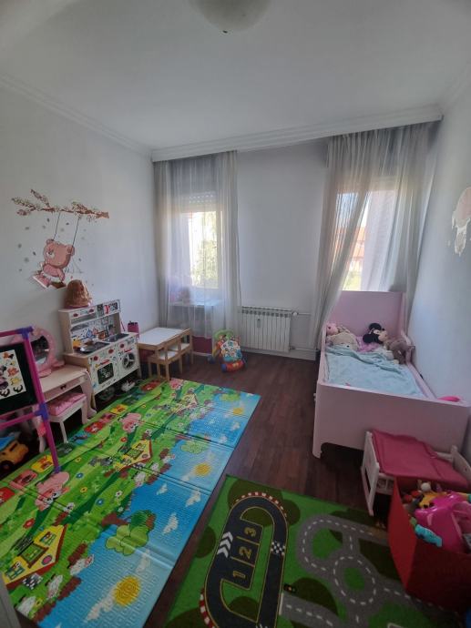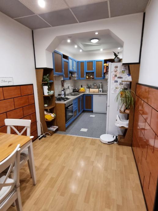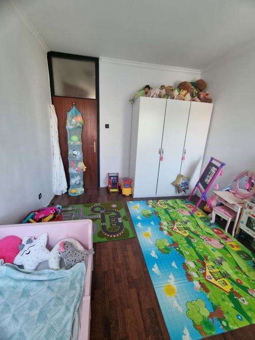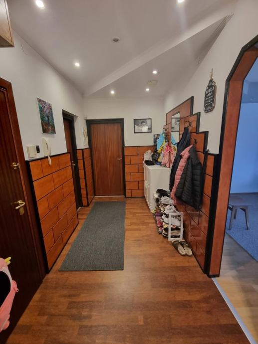 Stan se sastoji od velikog dnevnog boravka, blagavaonice sa kuhinjom, balkona, špajze te posebno odvojenog spavaćeg dijela gdje su wc, kupaonica, 2 prostrane spavaće sobe.