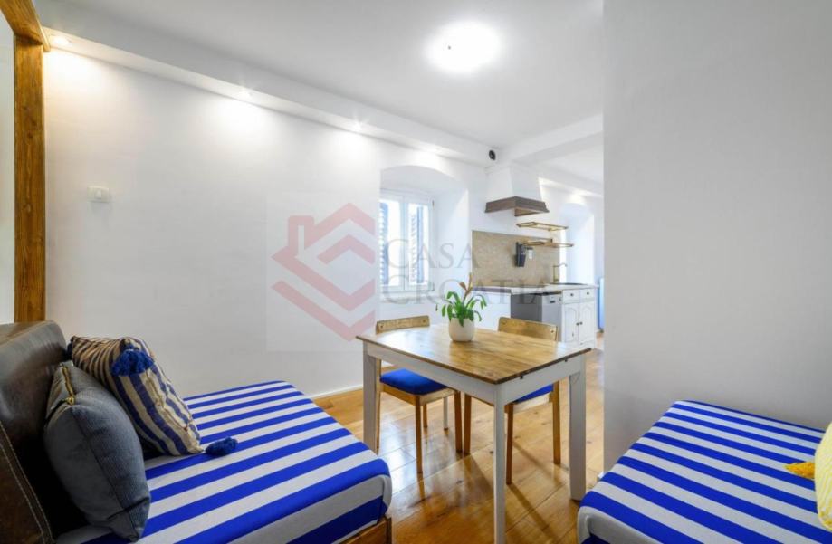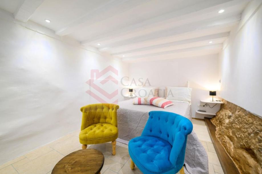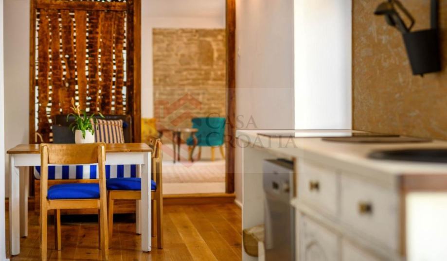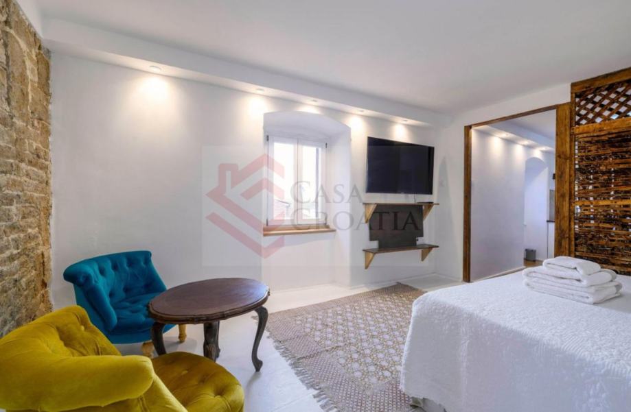 Prodaju se tri uređena i namještena dvosoban ''heritage'' apartmana „A“ od 46 m2, „B“ od 50 m2 i „C“ od 46 m2 s pogledom na more u prizemlju i na 1. katu zgrade u najstrožem centru Šibenika, u staroj gradskoj jezgri kod katedrale, u jednoj od najstarijih zgrada u gradu (cca 800 godina).