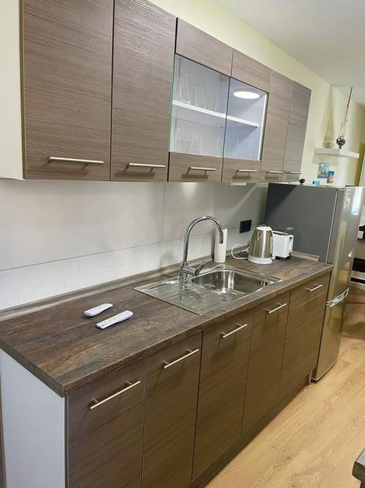 Iznajmljuje se novouređen dvosoban stan površine 58 m², potpuno opremljen namještajem i svim kućanskim aparatima. Stan ima klima-uređaj, perilicu posuđa i perilicu rublja.