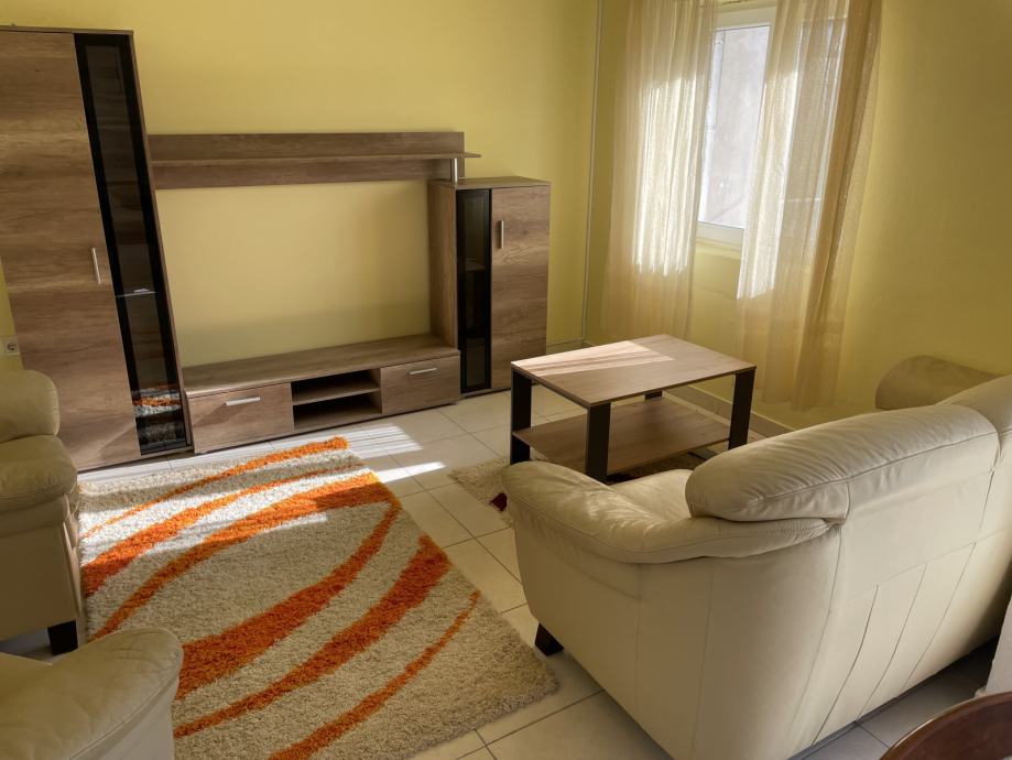 Stan za najam u mirnom kvartu u neposrednoj blizini centra grada i svih ostalih sadržaja neophodnih za život . Stan površine 70m2 sastoji se od: hodnika,dvije spavaće sobe,kupaonice,dnevnog boravka i kuhinje s blagovaonicom . Stan je na sunčanoj strani i pripada mu velika terasa i jedno parkirno mjesto. Uz stan ide i ostava (šupa ). Režije nisu uključene u cijenu.
