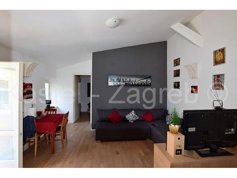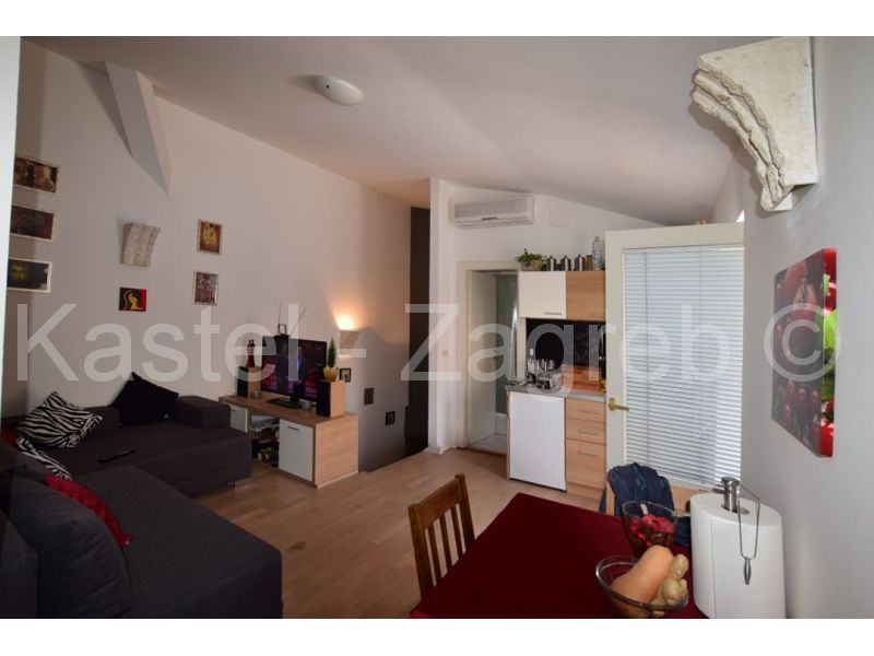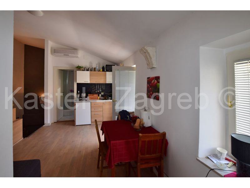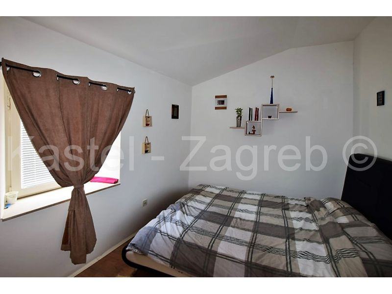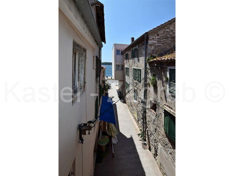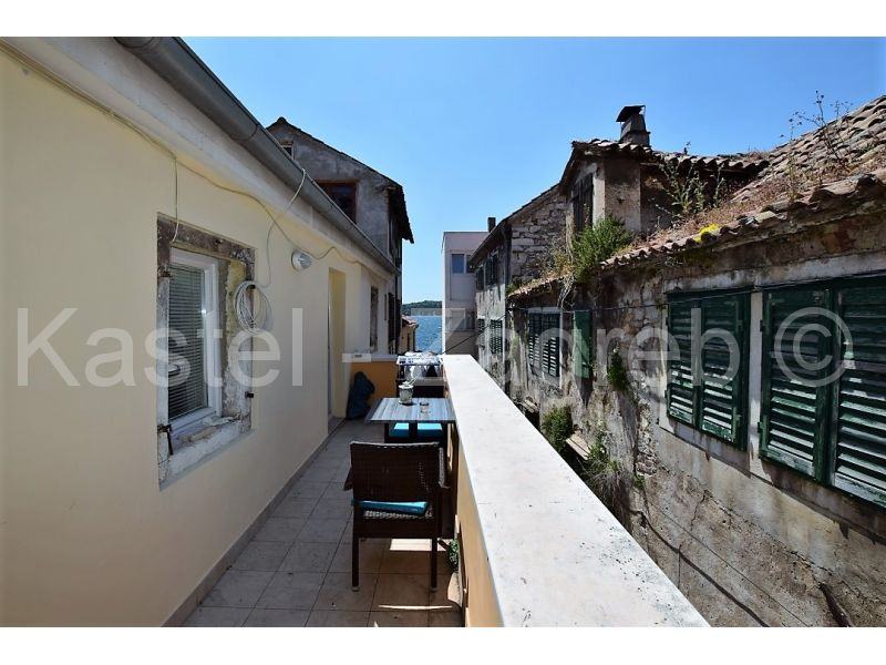 Dvoetažni stan u staroj gradskoj jezgri grada Šibenika, Obala dr. Franje Tuđmana, ukupne površine 82,88m2. Stan se sastoji od veće sobe, manjeg hodnika i wc-a na prvom katu, te dnevnog boravka s blagovaonicom i kuhinjom, kupaonicom, odvojenom spavaćom sobom i terasom na II katu. U potpunosti je adaptiran 2012. godine, ima klimu, a sa terase površine 9,66m2 ima pogled na more. Moguće ga je podijeliti u dvije stambene jedinice. U kući su ukupno dva stana.