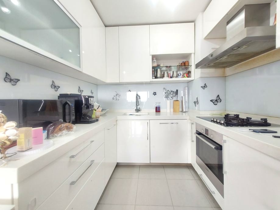Ima 90 m2 te se sastoji od tri sobe, dvije kupaonice, hodnika, kuhinje s blagavaonom, dnevnog boravka i velikog balkona s otvorenim pogledom na more i arhipelag.