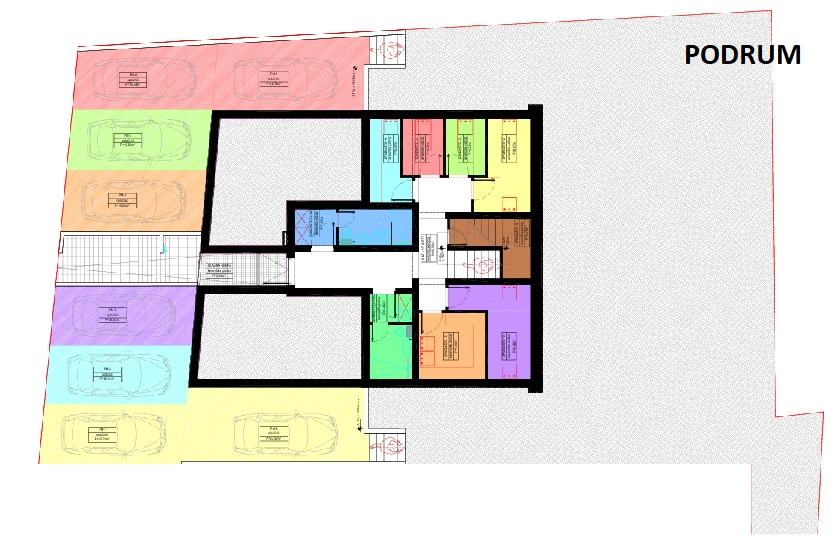• parkirna mjesta su veličine 15M2 sa ugrađenim punionicama za električna vozila koja su unaprijed prespojena na brojilo svakog stana,