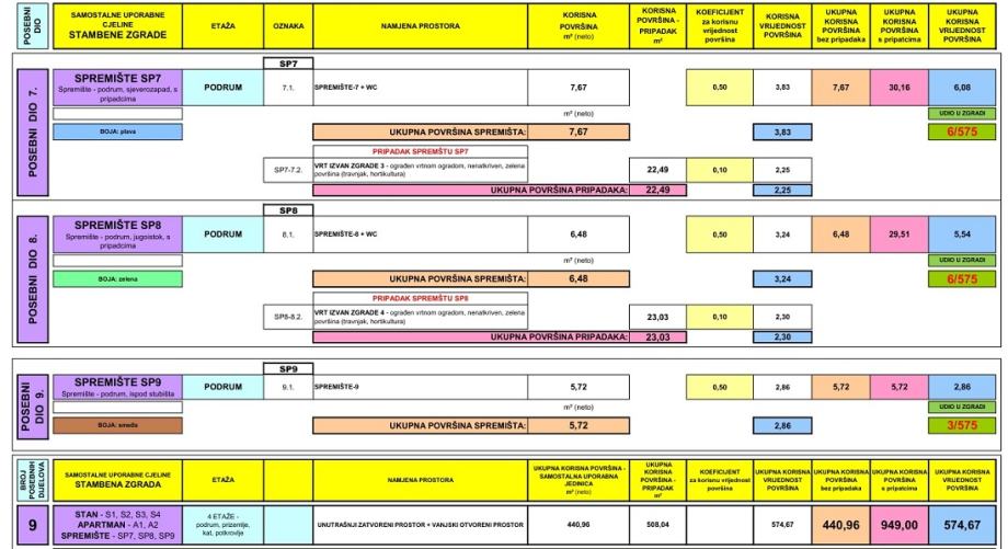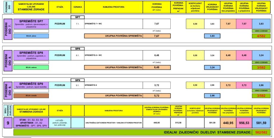 • prostrana spremišta kod ulaza u zgradu, instalacije svakog spremište su povezana na brojila vlastitog stana