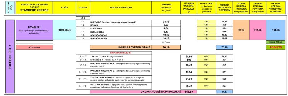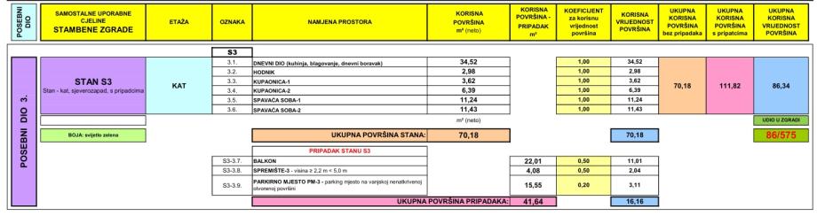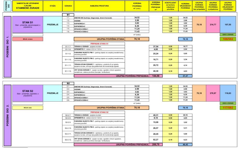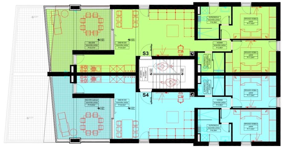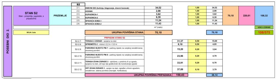 Apartman S2 nalazi se u prizemlju u zgradi B, bruto je površine 270,97 m2, neto 116,63 m2, a pripadaju mu i 2 parkirna mjesta.