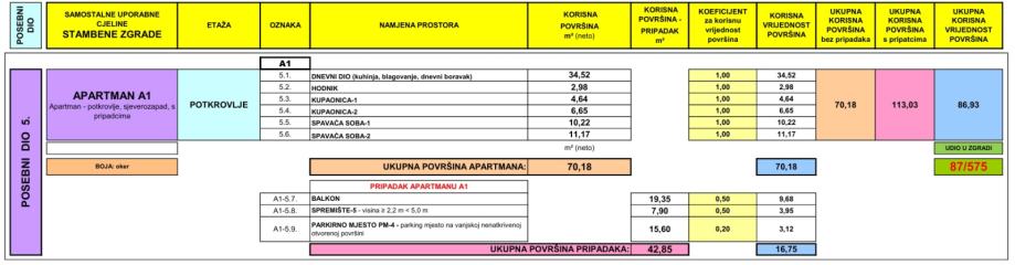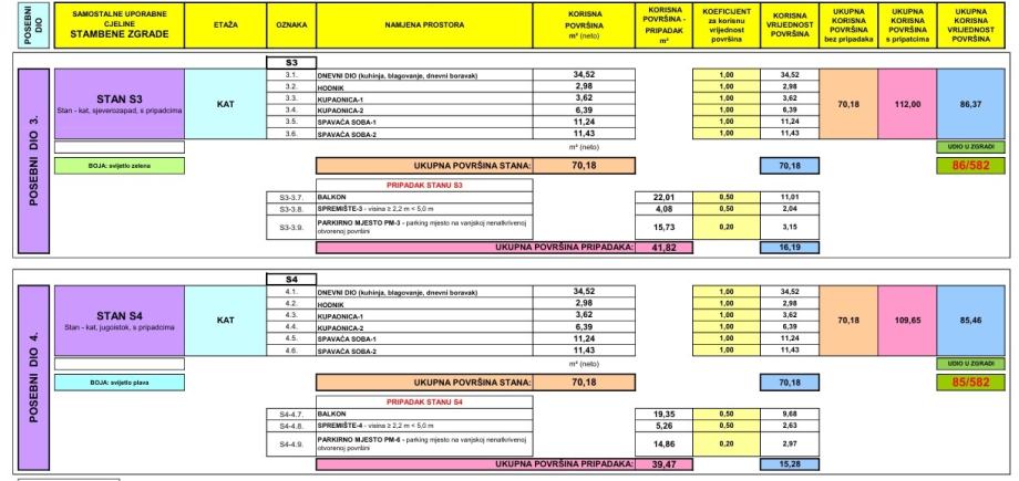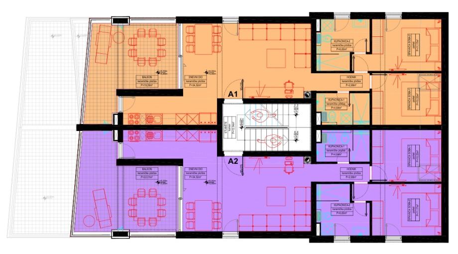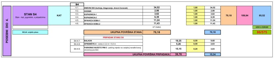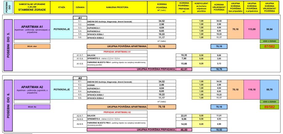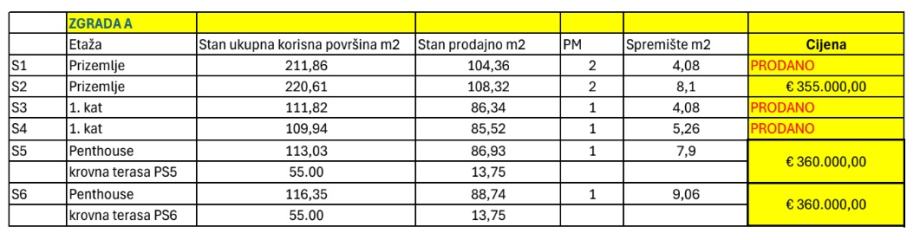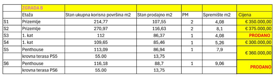 Ostali apartmani su prodajne površine od 85,52 m2 do 116,63 m2.