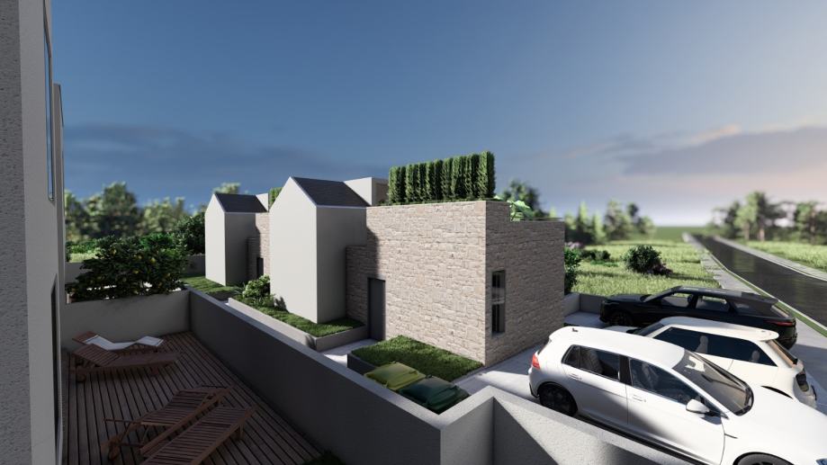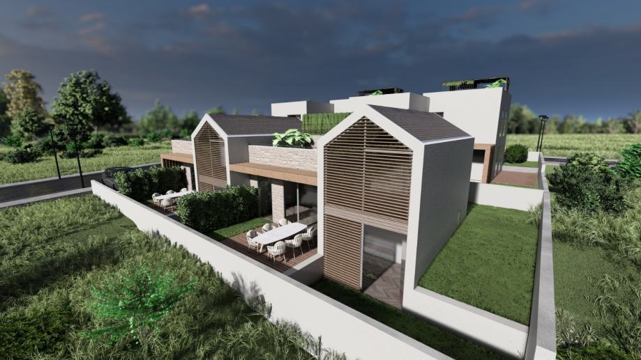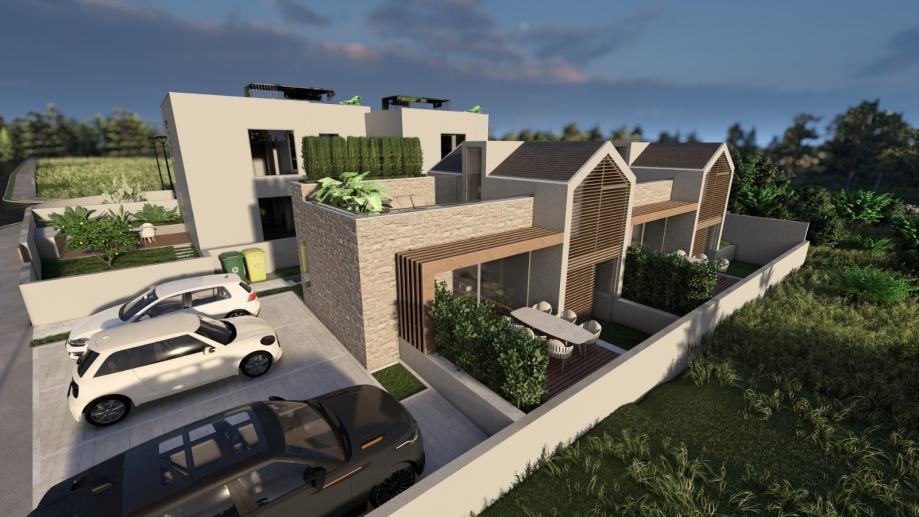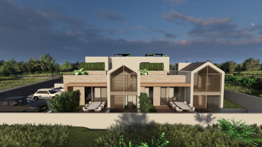 Smještene na samo nekoliko minuta hoda od mora, ove dvije odvojene jedinice, svaka sa zasebnim ulazom, donose luksuzan životni prostor u srcu Dalmacije. Nekretnina se sastoji od dvije moderne kuće na dvije etaže, svaka s vlastitom terasom i okućnicom. Arhitektonsko rješenje ističe se svojom originalnošću – dizajn je jedinstven, stvoren da se savršeno uklopi u prirodni krajolik, ali i da se izdvoji u moru sličnih apartmanskih projekata u blizini.