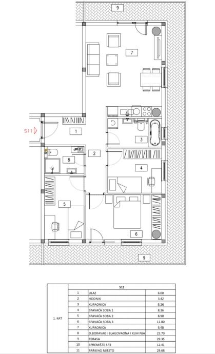 Stanovi su dvosobni, trosobni i četverosobni, a svakom stanu namijenjeno je spremište te parkirno mjesto.