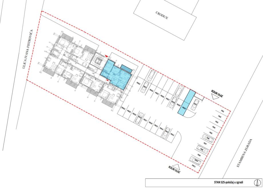 Zgrada broji 30 stanova raspoređenih na 5 etaža (prizemlje + 4 kata).