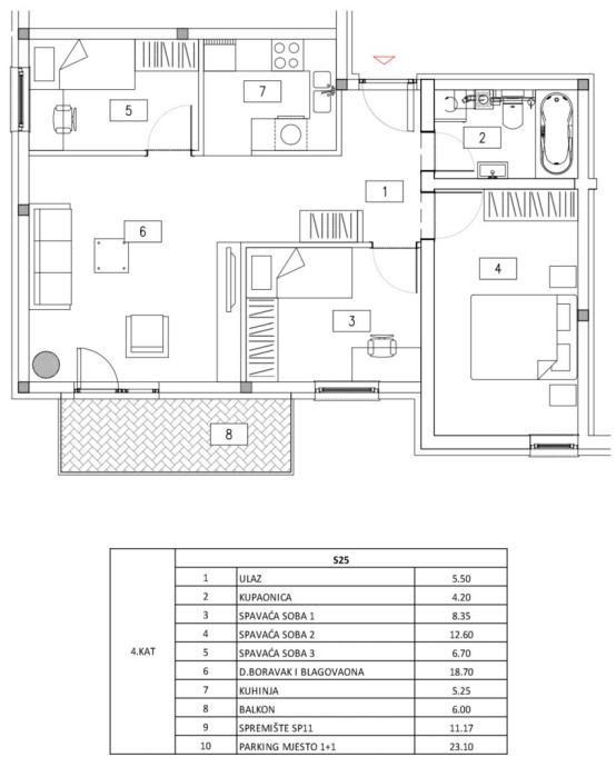 Stanovi su dvosobni, trosobni i četverosobni, a svakom stanu namijenjeno je spremište te parkirno mjesto.
