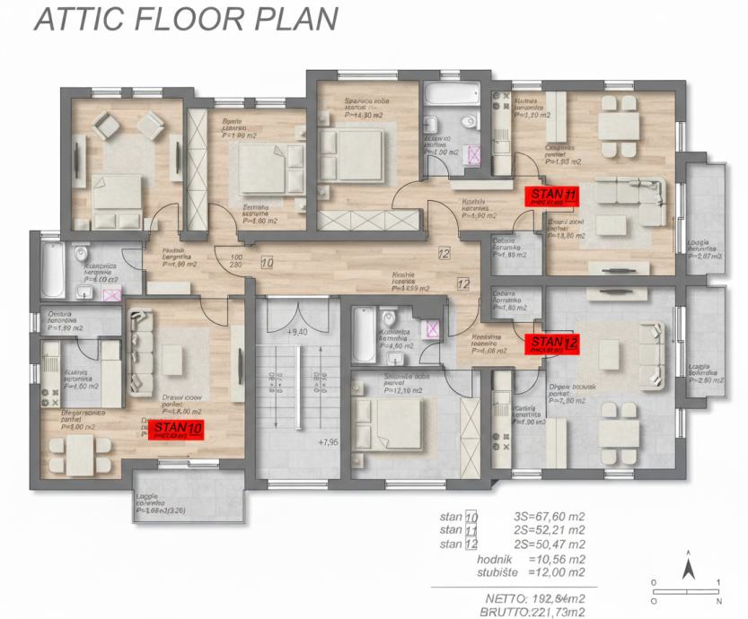 NAPOMENA: Kvadratura stambenog prostora je projektantska i podliježe uobičajenim odstupanjima i tolerancijama.