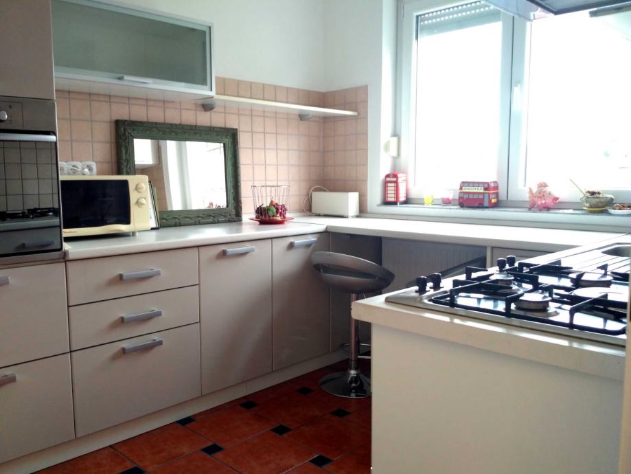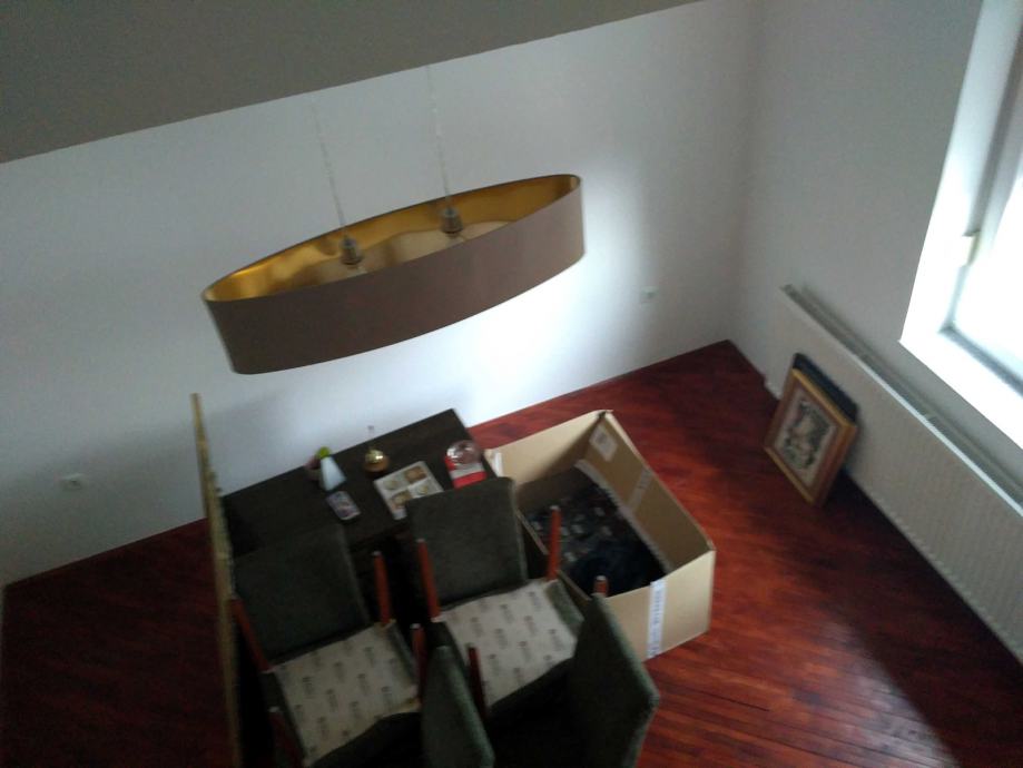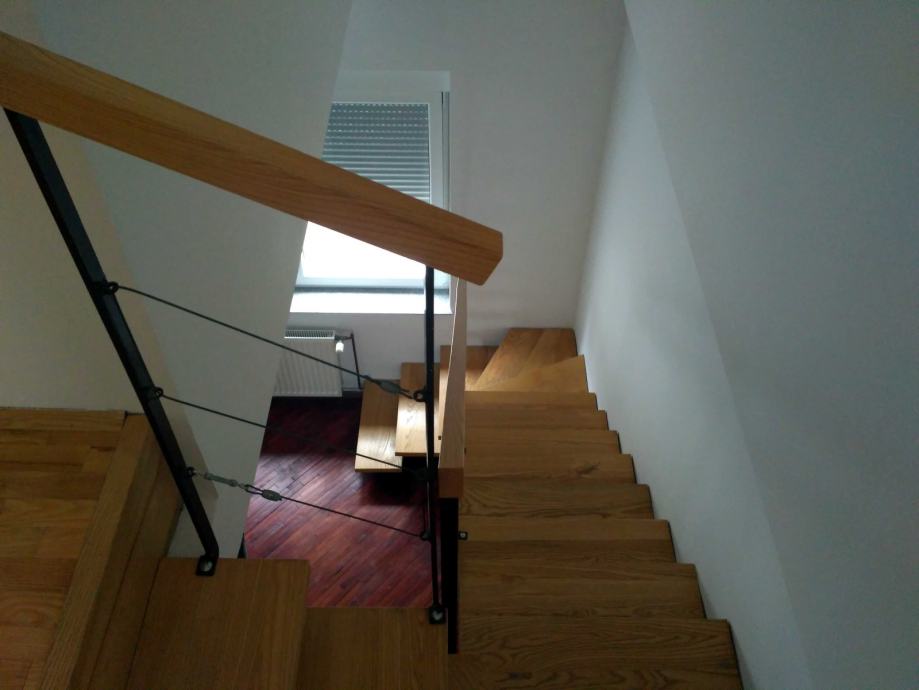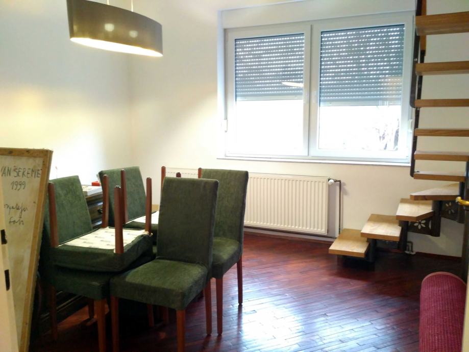 Prodaje se lijep, konforan i renoviran dvoetažni stan na odličnoj lokaciji. Stan se sastoji od kuhinje, blagavaonice, kupaonice, ostave, wc-a i balkona na doljnjoj etaži i tri sobe i kuponice na gornjoj etaži. Sva brojila su odvojena. režijski troškovi su niski. Stan je na mirnoj lokaciji, u blizini osnovne škole i vrtića, zgrada ima svoje dvorište tako da je osiguran i parking. Postoji i mogućnost odvajanja na dva stana. U podrumu se nalazi drvarnica, koja je popločena i zatvorena.