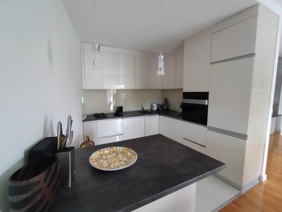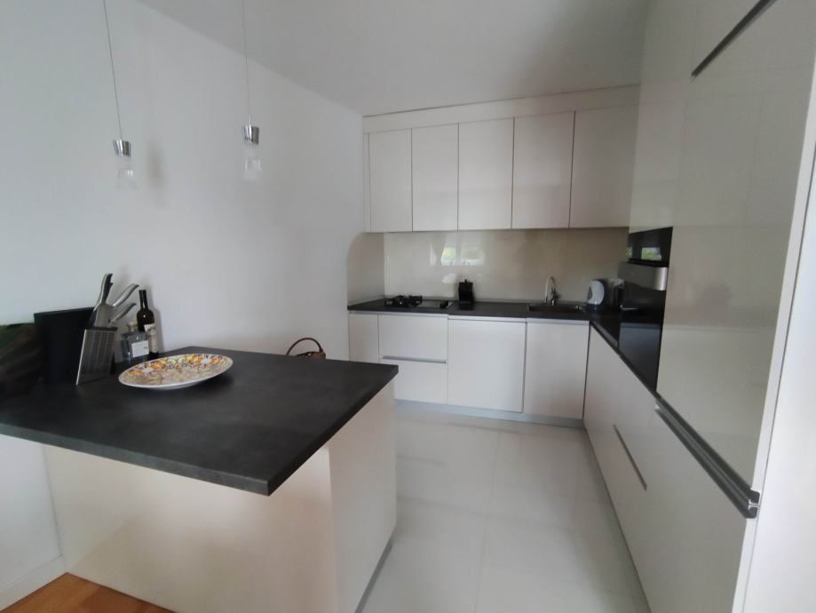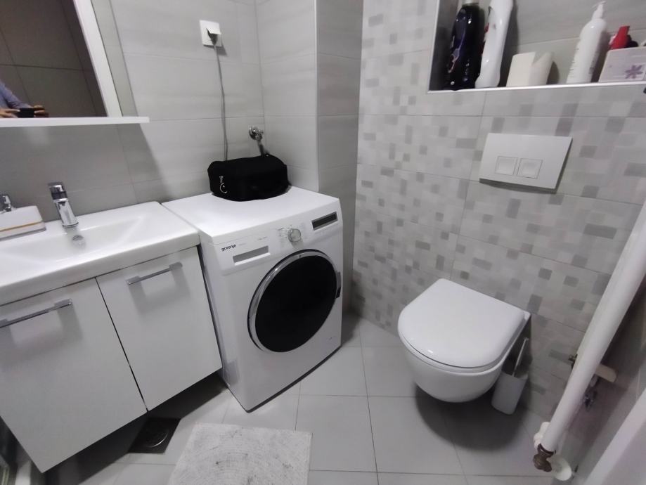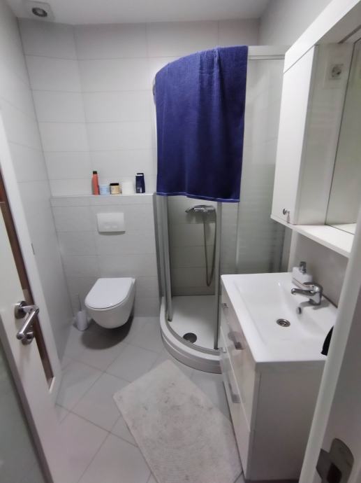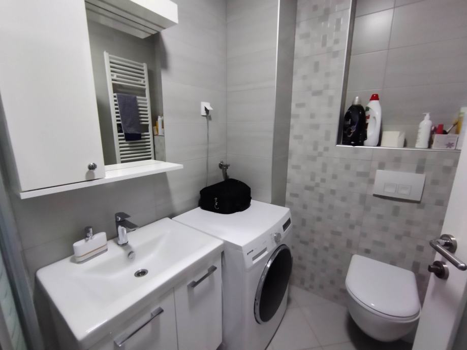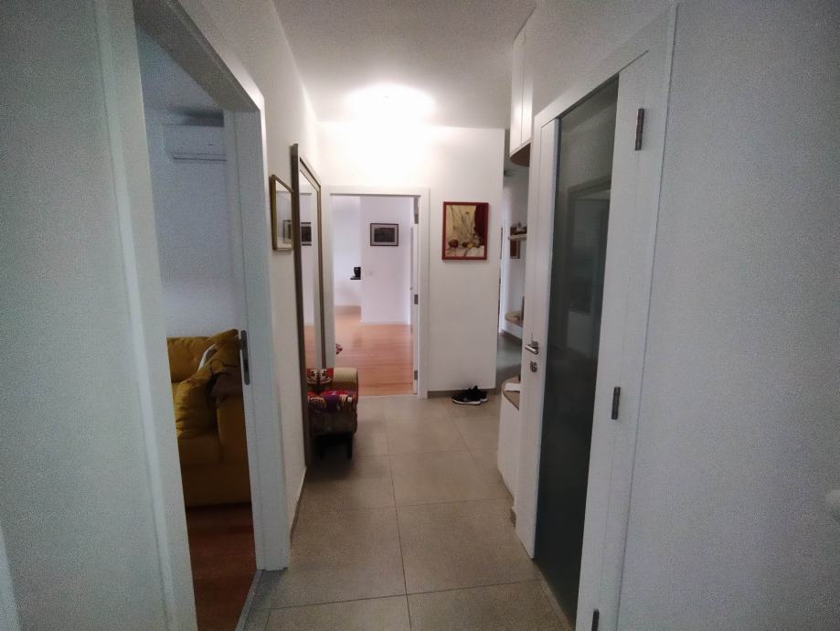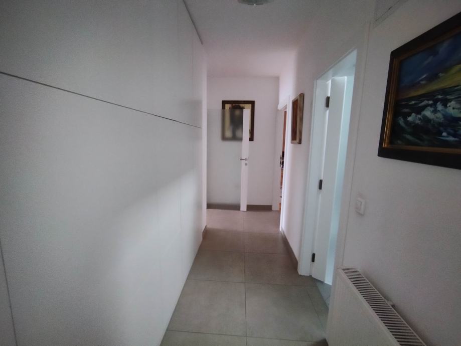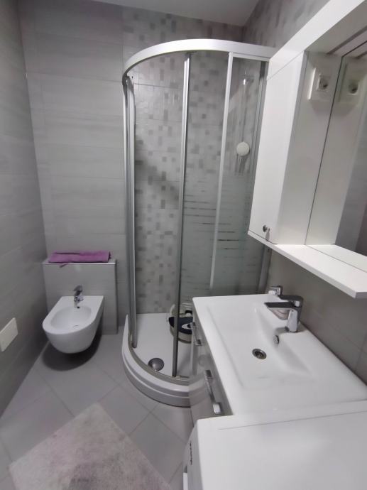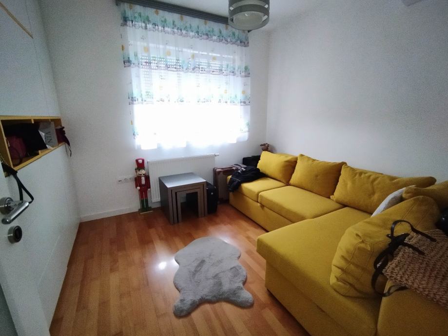 Prodaje se lijep, nov, komforan i kompletno namješten četverosobni stan u novogradnji u centru grada na lijepoj i mirnoj lokaciji. Stan se sastoji od dva hodnika, dnevnog boravka, kuhinje sa blagovaonicom i izlaza na balkon, te tri sobe, ostave, dvije kupaonice od kojih jedna ima saunu. U prizemlju zgrade se nalazi pripadajuća garaža i još jedna ostava. Stan se prodaje kompletno namješten.