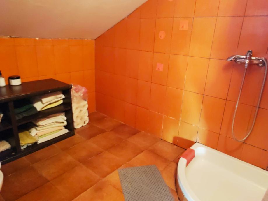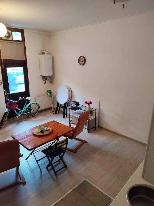 Stan u kući u širem centru grada, na lijepoj i mirnoj lokaciji, sa svim priključcima...Sastoji se od prizemlja u kojem se nalazi soba sa sanitarnim čvorom i kupaonicom (48,78 m2), što može biti i zasebna cijelina, pa visokog prizemlja gdje se nalazi kupaonica, dnevni boravak s kuhinjom, spavaća soba i ostava (58 m2), te potkrovlja gdje se nalaze još dvije spavaće sobe i kupaonica (50,87 m2)...Vodi se kao poslovni prostor, no može se izvršiti i prenamjena (prema potrebi i željama kupca)... Centralno plinsko grijanje, sva brojila odvojena...