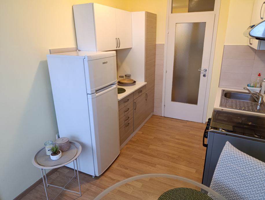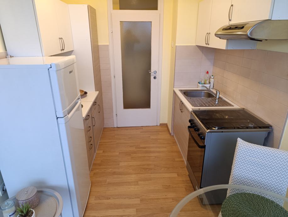 Namješten:kuhinja, bijela tehnika ( hladnjak, štednjak, perilica rublja),ormari u hodniku, soba namještena.