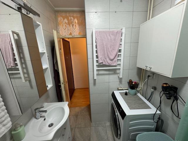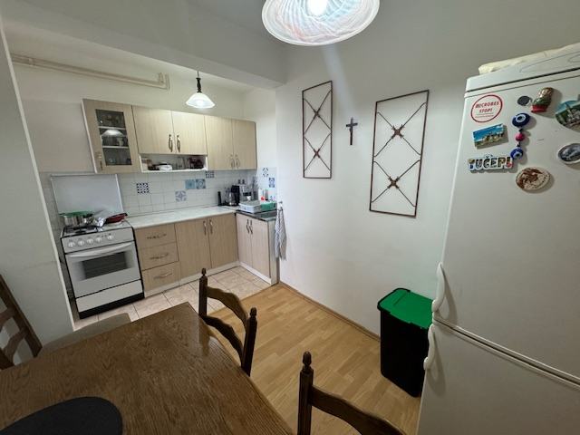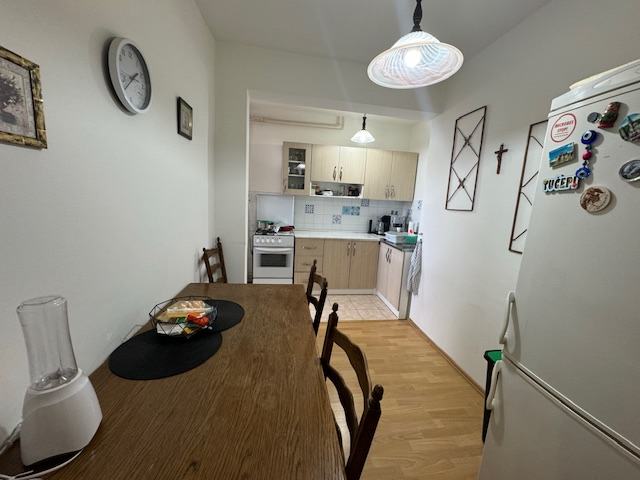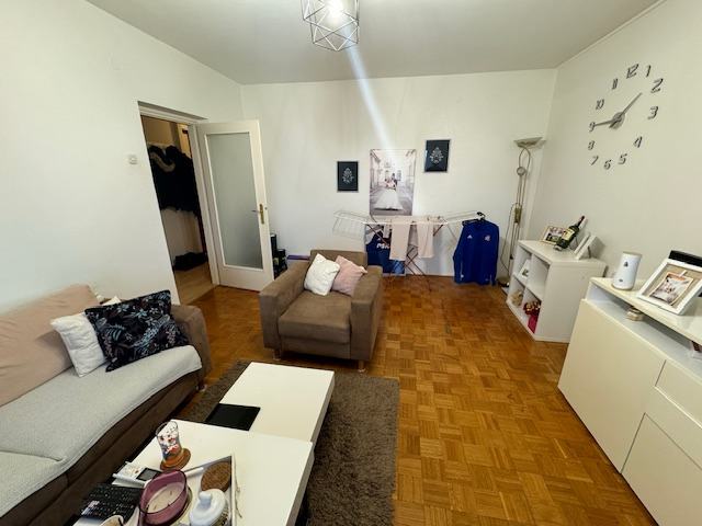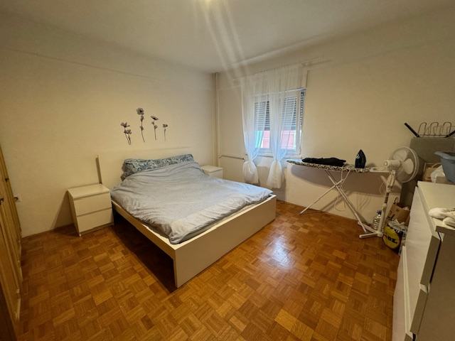 Prodaje se stan na naselju Slavonija 1. Površine 60,13 m2 po zemljišno knjižnom izvatku. U naravi malo veći jer je zatvorena kuhinjska lođa. Stan se sastoji od ulaznog hodnika, kupaonice, ostave, dnevnog boravka sa balkonom, spavaće sobe i kuhinje sa blagovaonicom i zatvorenom lođom. Stan je u dobrom stanju. Djelomićno izmjenjena vanjska stolarija, nova ulazna vrata, novija kupaonica. Radijatori su skinuti, grijanje je na klimu. Pripadajuća prostorija (šupa) u podrumu zgrade. Dva lifta od kojih jedan teretni.