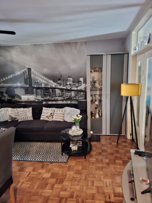 Stan se sastoji od spavaće sobe, dnevnog boravka, kuhinje, ostave, kupaonice, hodnika i predivne velike terase, koja gleda na dječje igralište i zelenilo...