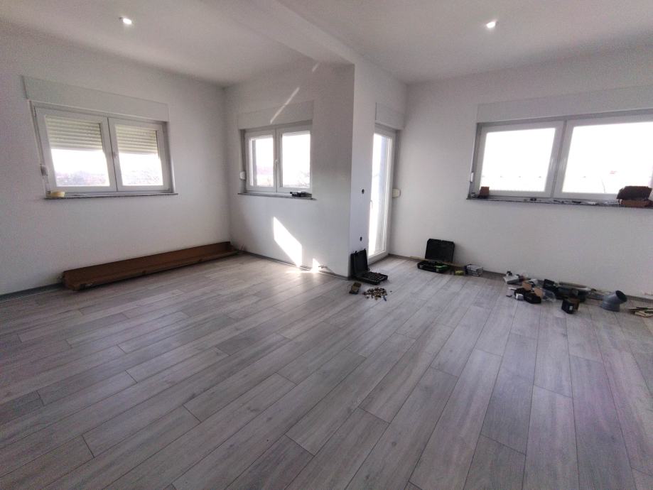 NOVOGRADNJA! Prodaje se trosobni stan u naselju Zrinski Frankopan. Stan je novo sagrađen, a sastoji se od spavaće sobe, dječije sobe, kupaonice, predsoblja, kuhinje s blagavaonicom i dnevnim boravkom sa izlazom na balkon. Stan je konforan trosobni i nalazi se u zgradi sa dva stana i poslovnim prostorom u prizemlju. Uz stan ide i pripadajuće parkirno mjesto. Sve režije su u potpunosti odvojene tako da su mali režijski troškovi.